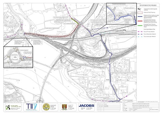 The routing of shared use Pedestrian and Cycle facilities through the new interchange is outlined on the drawings below.